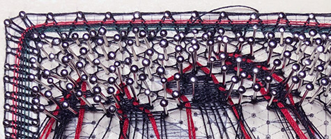 I am working on the cloth stitch trails lesson with The Adventurous Lacemakers group. I normally create geometric (perfectly symmetrical) patterns, so this is far from my normal design abilities. I decided to use a rose tattoo as my inspiration. I think it should work well for this type of pattern.