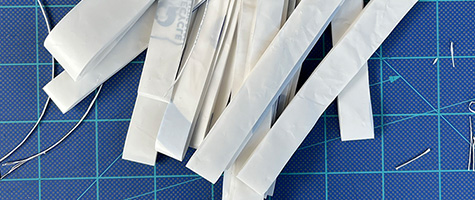 ruler to cut 1/2 inch strips from plastic bag