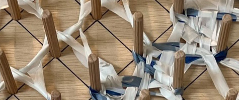 Lindy de Wijn (Australia) is part of The Adventurous Lacemakers group, so I got an opportunity to see a presentation on some of her outdoor installations. Some of these were planned/commissioned, but others were little lace secrets, hidden around the town where she lives. This concept appealed to me, so I designed this project with a random outdoor installation in mind. The plastic grocery bags help with the longevity of the piece, although who knows how long it would be in the park before someone took it down.
