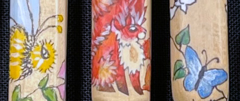 After a time, IOLI sent out an email about an auction containing lace making supplies and all manner of dolls. I did not realize Cathy had also been a doll collector. I ultimately purchased three sets of bobbins. The animal and insect bobbins were made by Elf Maiden. I took a bobbin painting class from Vellancy Fisher (Elf Maiden) at the IOLI Utah Convention in 2013, so I recognized them immediately.