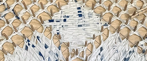 I love how distinct the cloth trails are! You can also really see the blue variegation from the words on the grocery bags. The fun part is when you get close, there are readable words. One says, you can recycle this bag. Kind of perfect, if you ask me.