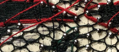 I am happy with my decision to use black thread throughout the design and a red gimp (thicker thread). Having the red go beyond the gimp looked messy to me. […]